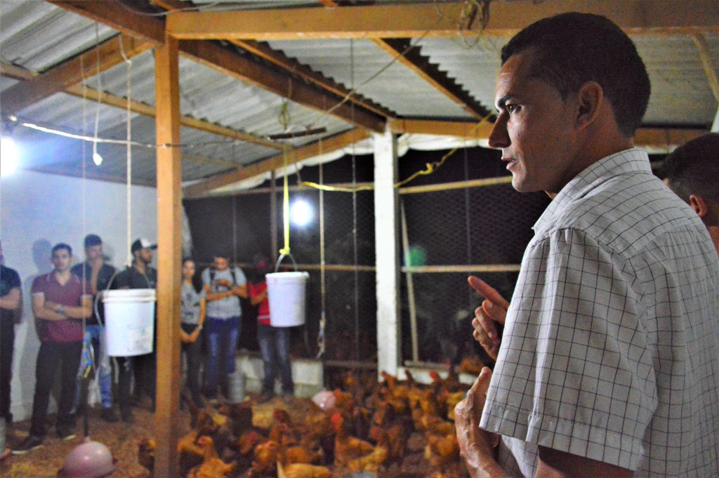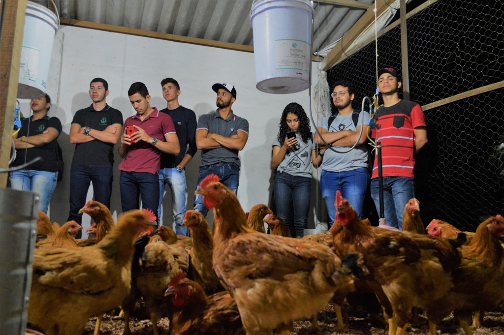 Alunos de Agronomia participam de aula prática sobre o manejo na criação de galinhas caipira